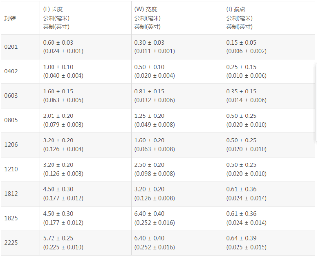 1、封装尺寸:通用型贴片电容包括四个常用的封装:0402、0603、0805、1206。